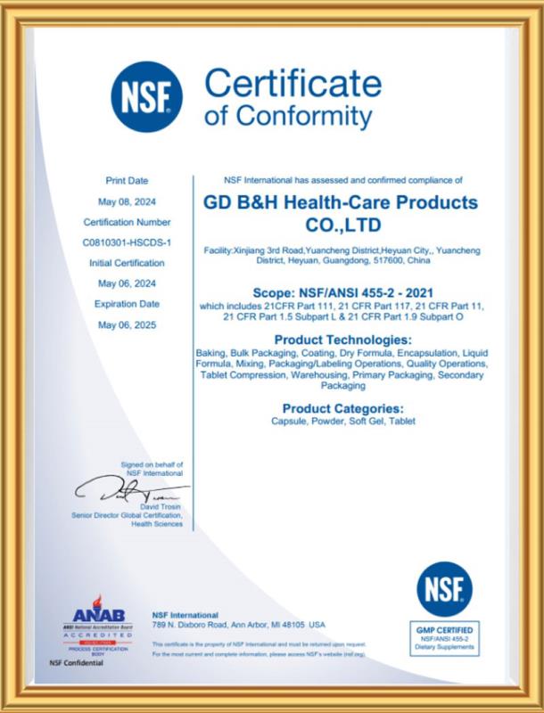 此次獲得NSF的GMP認證,是對廣東美麗康生產管理和產品質量的肯定,也是對公司未來發展的有力支持。廣東美麗康將繼續秉承“質量領先,服務第一”的宗旨,不斷提升產品品質和服務水平,為消費者提供更加健康、科學、優質的保健品。同時,公司也將繼續加強與國際先進企業和機構的合作與交流,不斷引進新技術、新工藝和新材料,推動保健品行業的持續創新和發展。